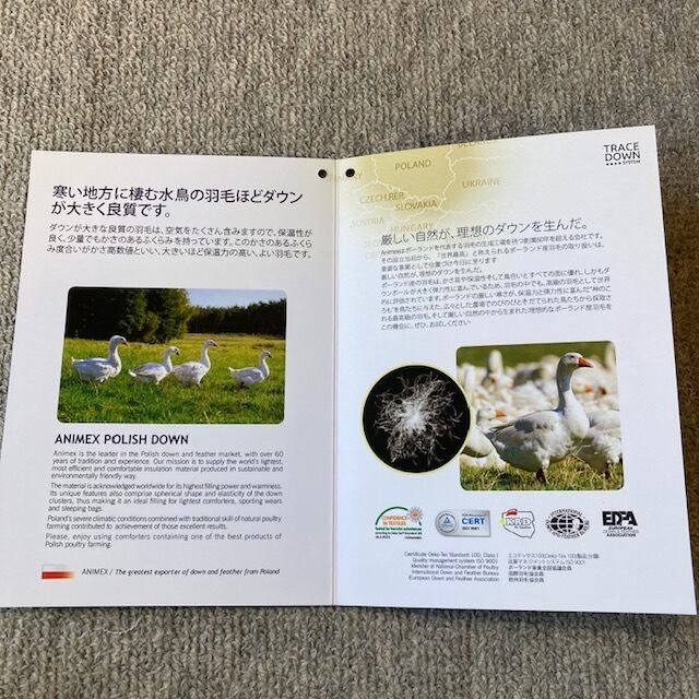 ポーランドのANMEX社のマザーグースを使用した、軽くて暖かいと好評のワンランク上の羽毛布団です。